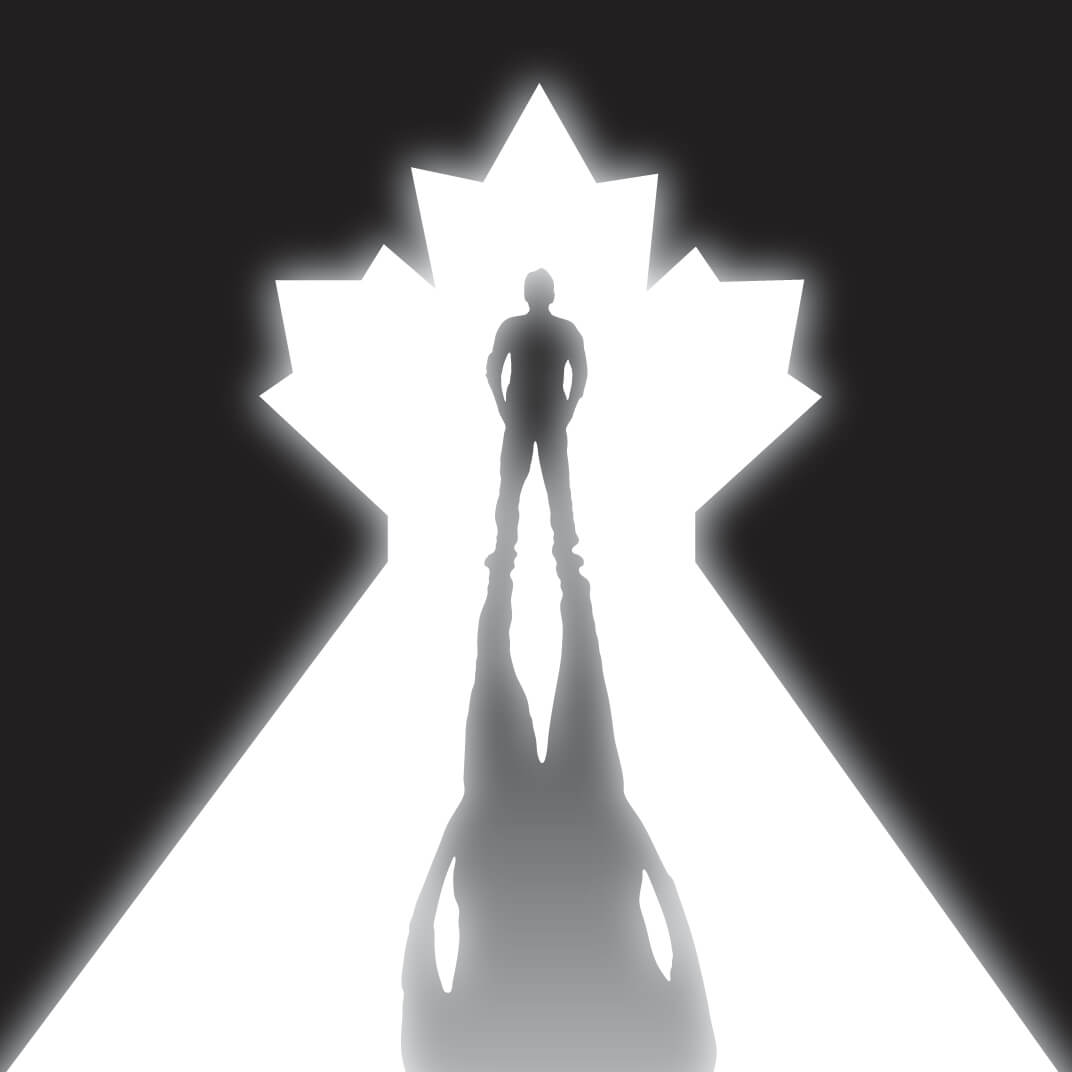 In this stage, visuals really began to develop. As a main graphic element, I developed this glowing silhouette of a person standing in a maple leaf doorway. This visual provides a slightly abstract perspective, but holds deep meaning that can change from viewer to viewer. The imagery can be interpreted as someone leaving the closet, with the light being the freedom to be themselves. It can represent stepping into Canada with the hope for better treatment as a 2SLGBTQI+ immigrant or refugee. It can be seen as Canadians stepping into a new chapterof community and joy. All interpretations of the visual reinforce the unique experiences that 2SLGBTQI+ Canadians experience in their journey to find themselves, present, past, and future. As meanings grew deeper with this graphic, it soon became the core element of the exhibit promotion.